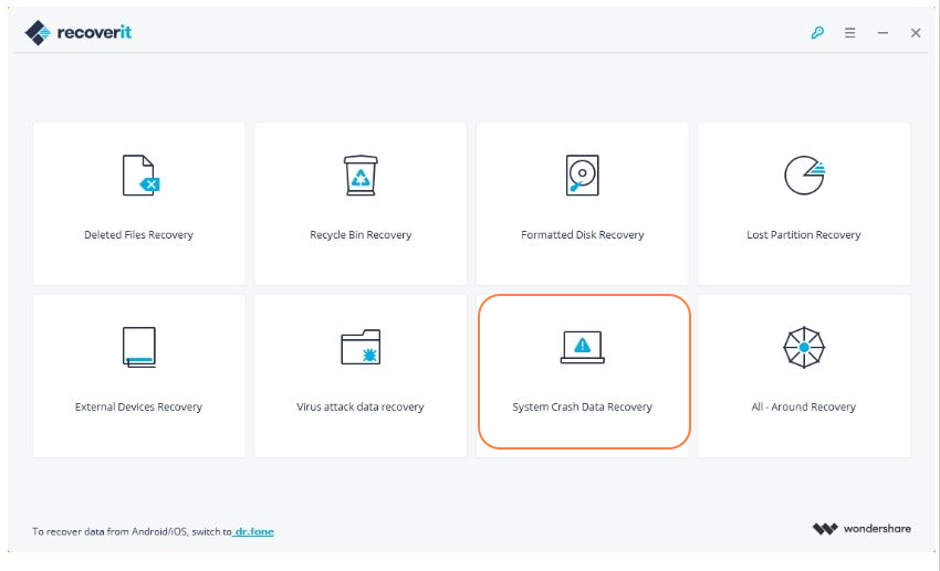 - 完成下载和安装过程后,根据数据恢复向导完成数据恢复。首先,使用系统崩溃数据恢复模式,然后开始创建可启动媒体。