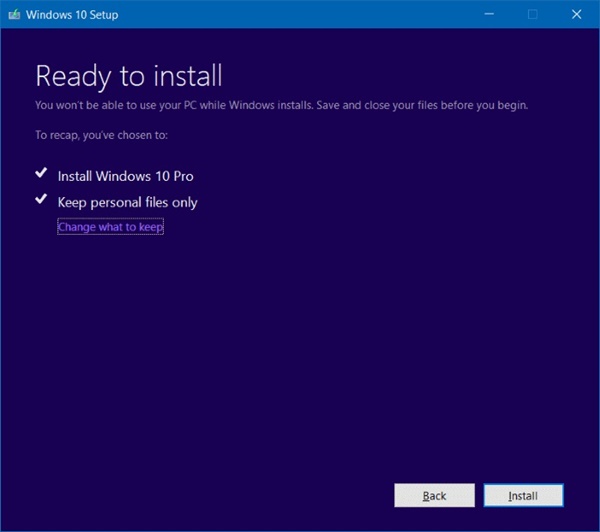 步骤8安装程序将继续并询问您是否要保留内容,用户可以选择保护个人文件(和应用程序)安全。