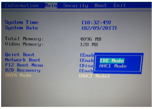有时,由于硬盘机制失去控制,用户可能会收到Windows STOP:0x0000007b。此种情况下,我们可以选择使用BIOS策略更改硬盘控制器,根据实际需求灵活选择不同方式,从AHCI模式到IDE模式都可以。单击按钮F2进行BIOS设,用户将立即获得BIOS设置的显示。