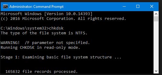 - 桌面将立即显示命令提示符。输入命令“chkdsk c:/ r”。