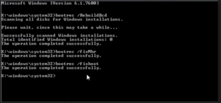 - 然后键入命令“fixmbr”。如果该过程完成,则再次重新启动系统。
