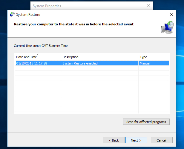如果丢失了已保存的设置,则可以选择将Windows系统还原到返回日期。