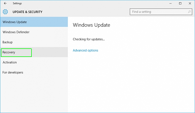 1. 在左侧面板中列出的所有选项中,单击“恢复”。