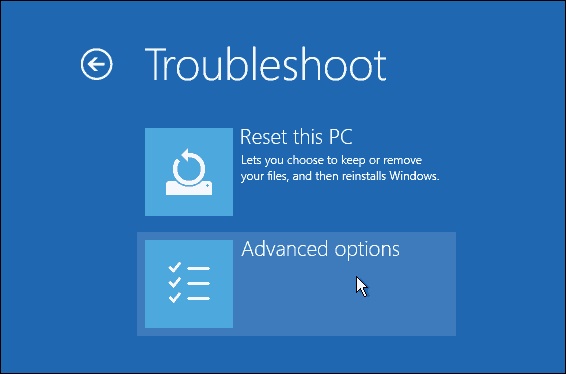 - 这将在屏幕上提供一些故障排除选项。您可以单击“高级选项”继续。