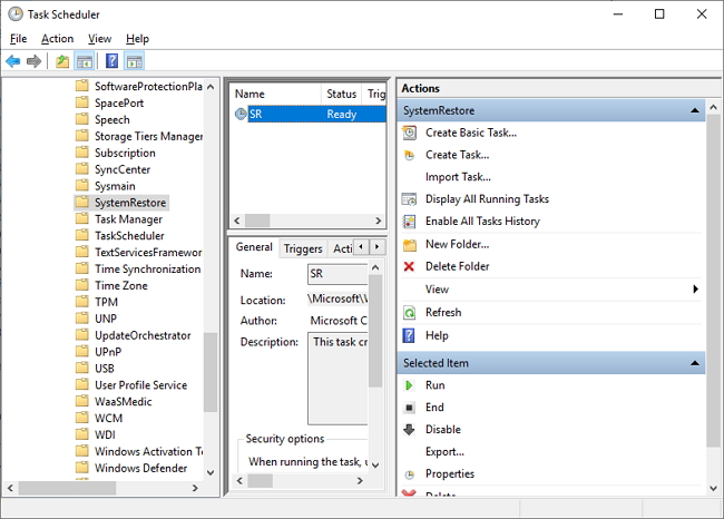 • 展开任务计划程序库,然后从下拉菜单中选择Microsoft。单击Windows,然后单击SystemRestore。