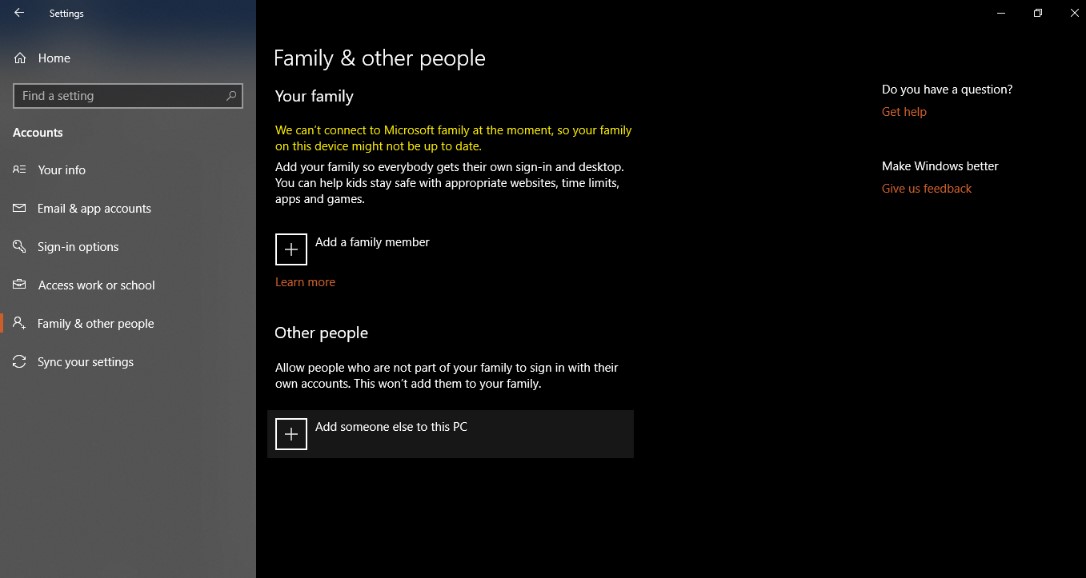 单击“ 家人和其他人”,然后选择“ 将其他人添加到此PC”