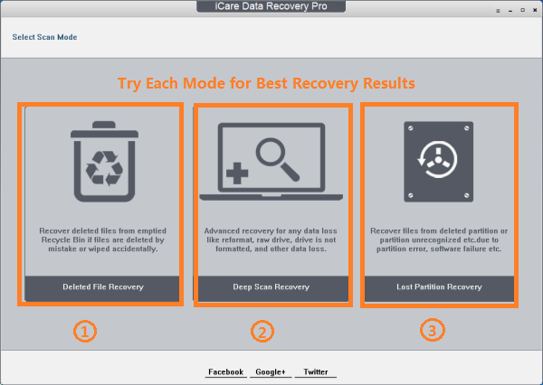 使用iCare数据恢复软件进行免费数据恢复操作非常简单。请遵循以下三个步骤: