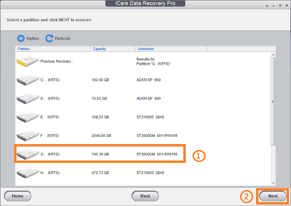 • 步骤2:选择要扫描丢失或删除的文件的磁盘或驱动器。