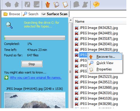 • 启用表面扫描,从重新格式化的媒体中恢复文件。