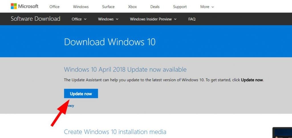 • 转到Windows 10官方网站,然后选择立即更新。