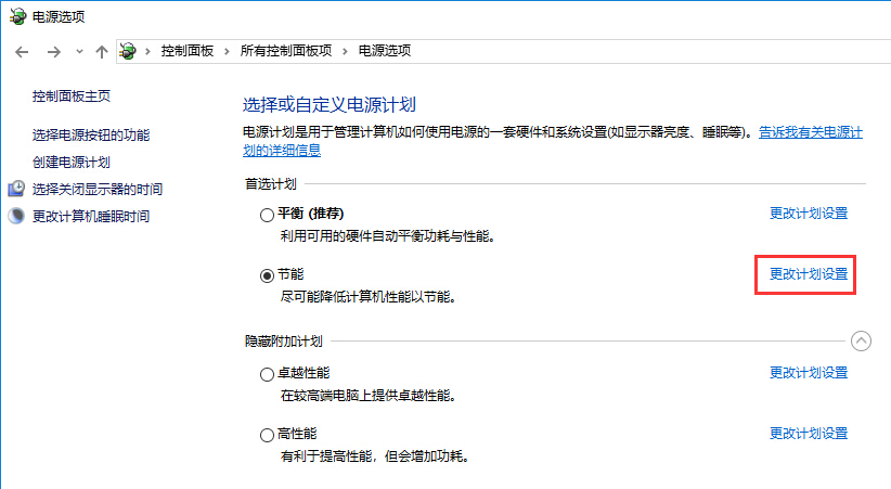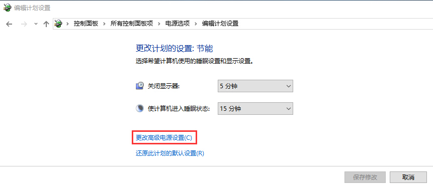 • 单击“省电模式”部分中的“更改计划设置