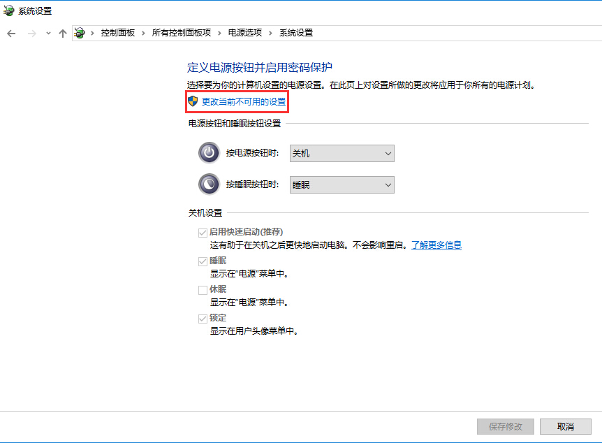 • 单击“更改当前不可用的设置”