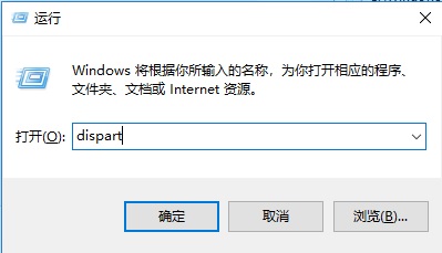 • Windows键+ R键在运行框中键入dispart。